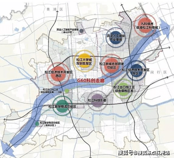 在上海科创版图中,松江G60科创云廊占据龙头位置,在G60高速两侧形成“一廊九区”的布局,集聚40多家世界500强,聚集了松江约90%的工业产值,占上海工业产值近10%(来源上海松江)。