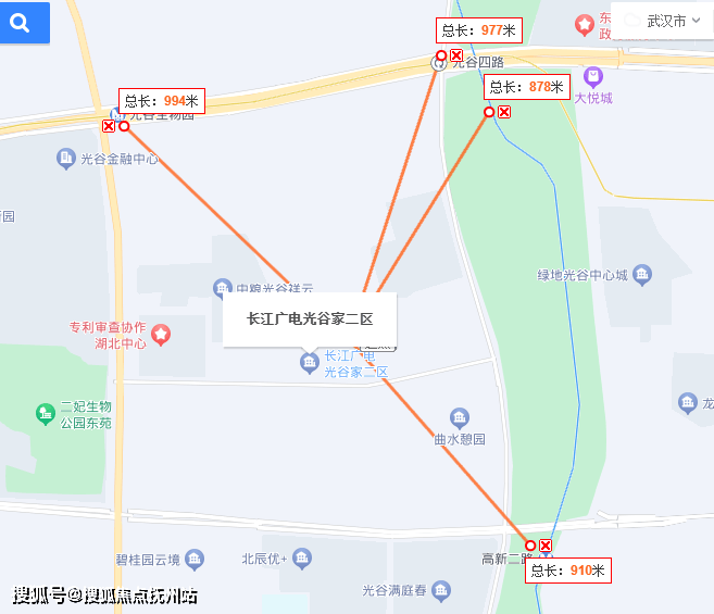 东边为光谷四路、光谷生态大走廊、绿地光谷中心城等。