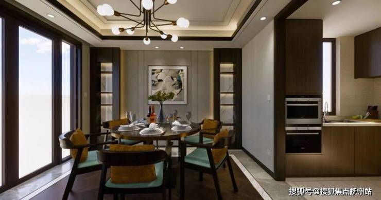 从产品形态上看,建邦国宸府打造的是金山新城极为稀缺的墅居产品,由高层+叠墅组成,建筑风格为现代中式滨海风格。其透露出的中式意境和构图美学我们可以从景观绿化一窥端倪:
