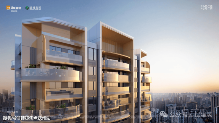 在阳台部分不仅使用了造价高昂的弧形玻璃,而且玻璃栏板局部采用彩釉工艺,与底部弧形铝板相互呼应,使楼栋外立面更加精致典雅。露台外伸、奇偶层错位,孝子祠澐璟通过精心的设计布局,让每一层都有属于自己的“空中庭院”。