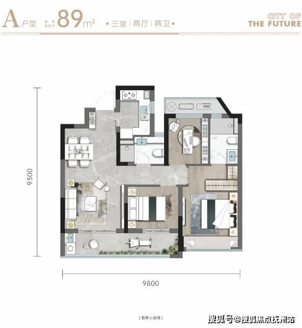 建筑面积约89m²样板房实景图