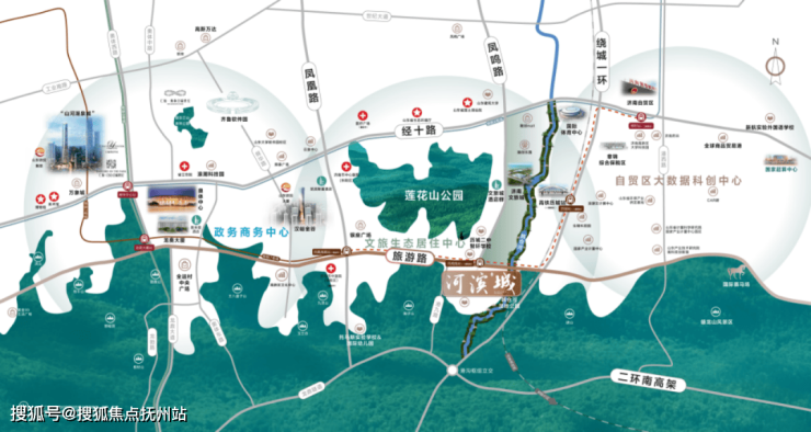 河滨城南邻泰山余脉,紧邻规划中的湿地公园、体育公园、绿地公园,拥揽城市中心罕见的森林绿意,在这样得天独厚的自然禀赋之外,CBD及奥体中心、汉峪金谷等代表城市国际化的生活配套,均匀分布在经十路、旅游路城市带,让主城繁华近在咫尺,宜居品质不言而喻。