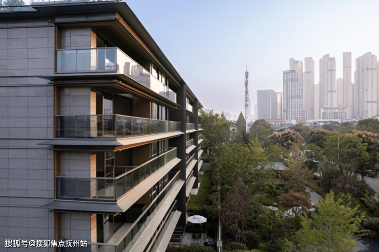 建筑立面上,采用现代东方云庐系,突出建筑的水平感和线条感,结构轻盈,纤细精致。