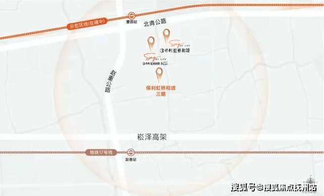 保利虹桥和颂·IN255不仅有轨交规划正在落地,且直线距离示范区线赵重公路站(在建)仅约350米,是不可多得的真轨交盘,2站前湾、3站虹桥枢纽、5站华为基地。