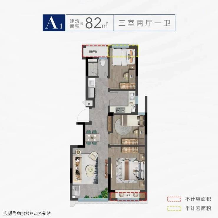仅建面约82㎡的户型面积,三室两厅与厨卫俱全,做到了极致的空间实用率,轻松满足全家所有生活场景。餐客厅一体连接封闭阳台,实现室内公共空间的超高利用。北面百变空间,可随意打造居家办公室,电竞游戏房,舒适儿童房等,让理想都会生活多一“室”。