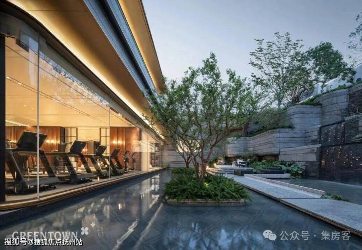 重点是作为一个整体抬高约3.7米的项目,地面层的生活馆、茶室,负一层的私宴厅、棋牌室、健身房、恒温泳池、瑜伽室,都朝向风景敞开。