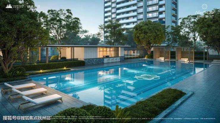 在中央设置了度假泳池综合区,规划泳池吧台、卡座等多个功能区,旁边还设计了颇富江南韵味的阳光水院和临水廊亭,且无界联通健身区、童趣乐园、长者花园等主题空间,营造步移景异的多重园境,下楼就能拥有度假酒店的松弛氛围。