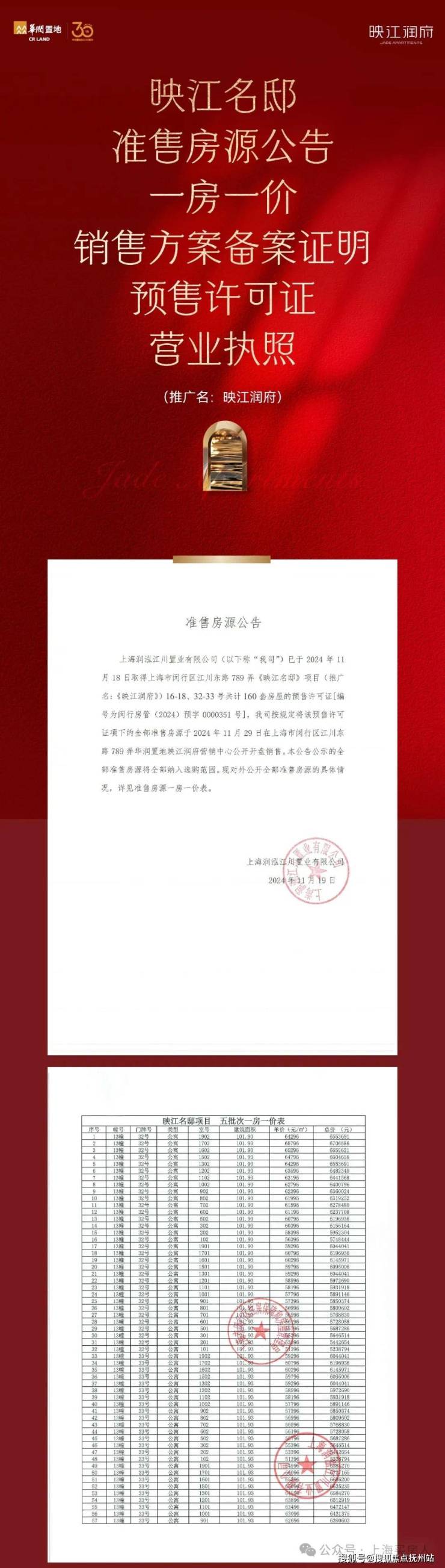 一房一价表发布!闵行500w级品质标杆!「华润·映江润府」售楼处电话:400-765-6772√√【热线】今日认购!将加推建面约88-103㎡精装3房
