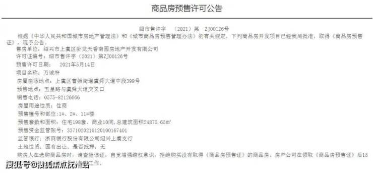 预售套数和面积: 住宅198套、商业10间,总建筑面积24875.65㎡