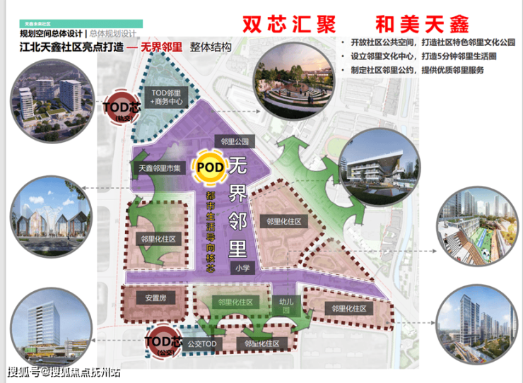 ”TOD轨交引导开发的交通枢纽中心+POD都市生活圈导向引导开发的生活服务核心+EOD生态为本城绿融合共生体“的开发模式,将邻里、教育、交通三大优势场景有机串联,打造全时段全方位的未来生活蓝图。