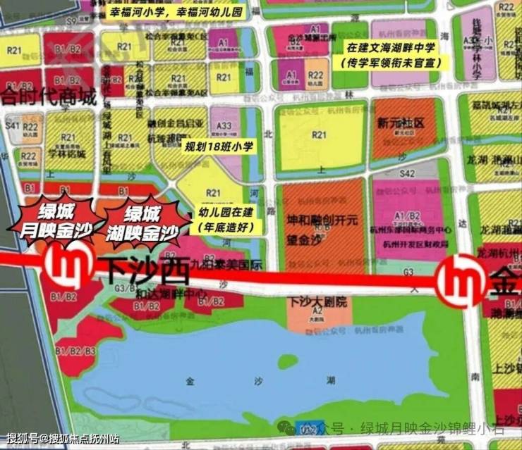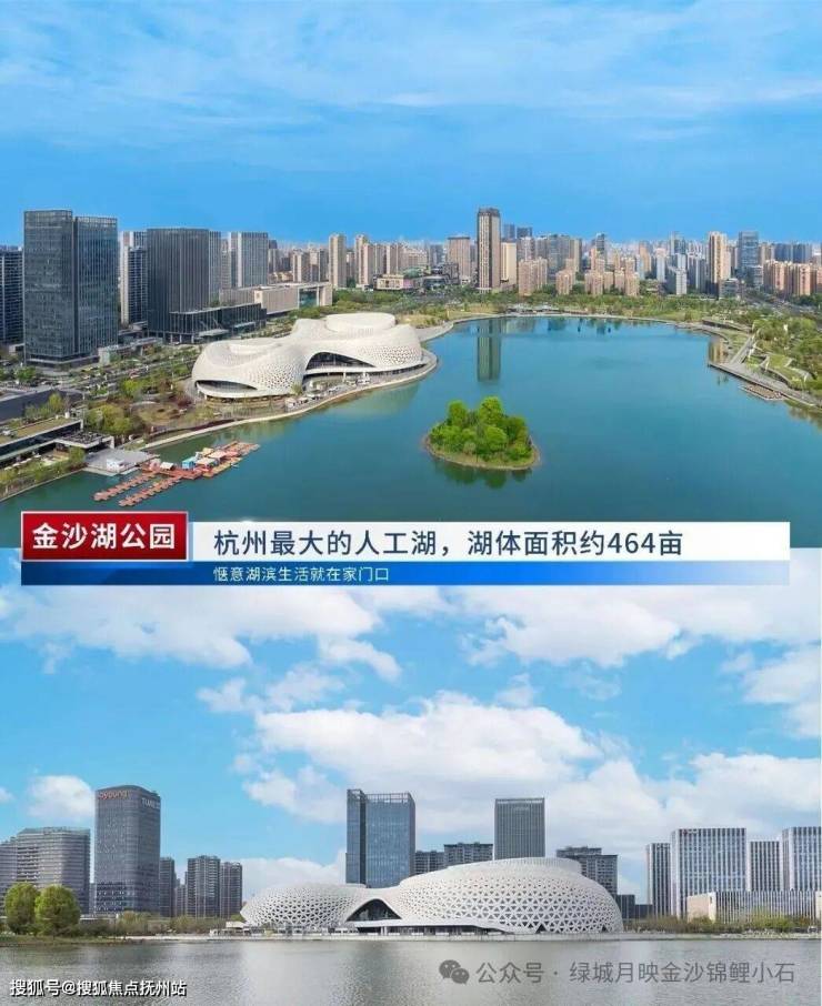 3️⃣配套醇熟的金沙湖,城东的璀璨宝藏作为杭州最大的城中之湖,金沙湖以国际湖滨之姿,坐享金沙湖大剧院、邵逸夫医院、双龙湖天街、等城市级配套,演绎充满想象的CBD国际湖居生活场。