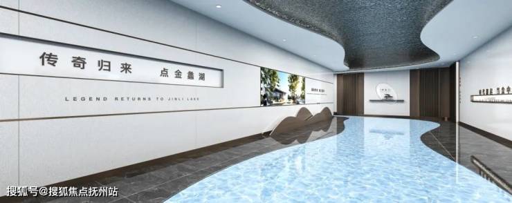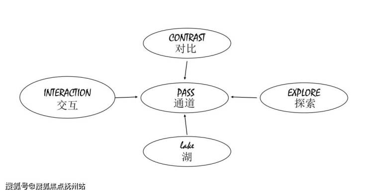 运用湖的流线型曲线,贯穿整个通道,在通道墙面增加动态灯箱等可互动的多媒体装置,营造智能科技感,隔栅和植物造景营造一种古典的氛围,科技与古典融为一体。