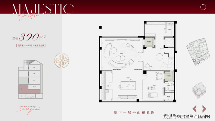 叠拼面积段约195-310㎡,分为1-2F下叠、3、4、5F为中间的平层面积236㎡,6-7F为上叠,计56套。