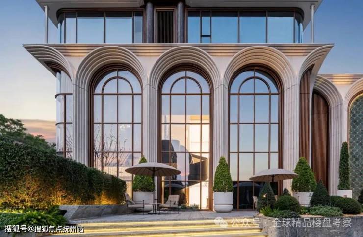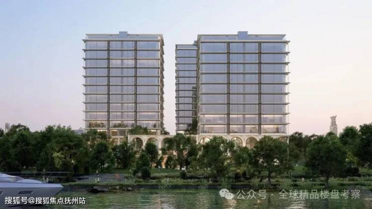 建筑设计由九米设计操刀,采用意式托斯卡纳风格,融合拱门、罗马立柱等元素,外立面运用玻璃、铝板等材质,营造悬浮感与雕塑感。首层抬高约12米,部分户型享270°环幕运河视野。打造意式托斯卡纳园林,含空中花园、下沉卡座、图书馆等,兼具艺术感与功能性。