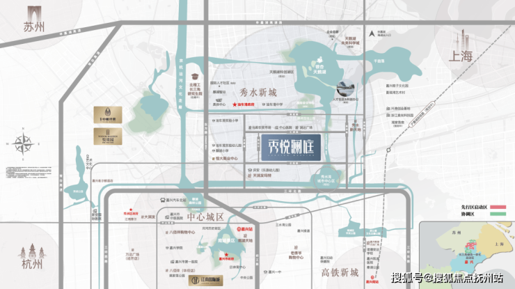 发展目标:秀水新城以打造“长三角一体化示范协调区的EOD新城”为目标,未来形成“一心、一湖、一轴”格局。