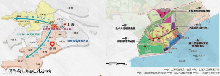 上海·金山根据《虹桥国际开放枢纽建设总体方案》,金山将全区域纳入“南向拓展带”,融入虹桥枢纽战略。以联动杭州湾,实践2035长三角一体化发展战略,树立上海西南重要门户。通过打造“上海湾区”城市品牌,成为产城融合样板城市、滨海花园城市、门户节点城市。