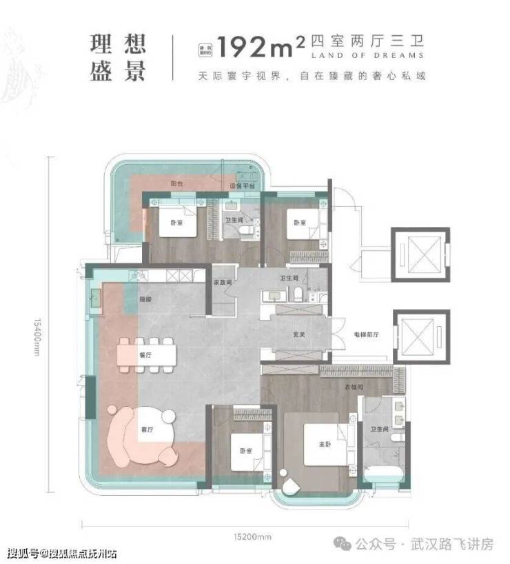 ③192㎡户型,四室两厅三卫。