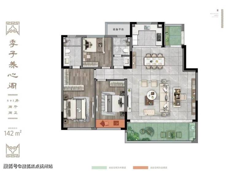 建面约142㎡三房两厅两卫:独立入户厅;横厅设计,餐客大宽厅;LDKG一体,南北通透;动静分离更彻底。