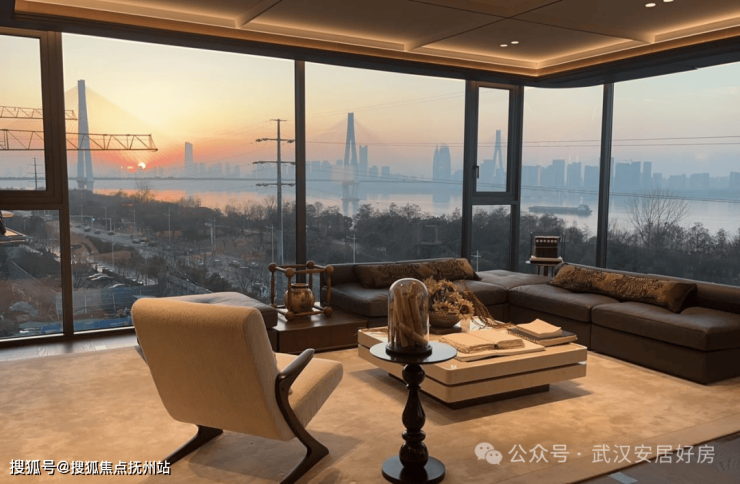 因为青山与武昌的区位关系,这里的住宅以北向看江为最佳朝向,项目在设计上将主卧与客厅布置在观江面,并打造约270°转角阳台,较大限度延展观江界面。小编实地去了一趟,正好遇上冬日的日落时分,体验了一把躺椅、一杯热茶、一本书,在沙发上随意靠着打个盹。阳光斜斜洒在身上,看着光影一点点移动,再看着夕阳缓缓沉入长江,整个过程安静而从容。从下午四点坐到六点,一杯下午茶慢慢喝完,太阳也刚好落山——那一刻让人真切感受到,生活的美好可以如此具象。
