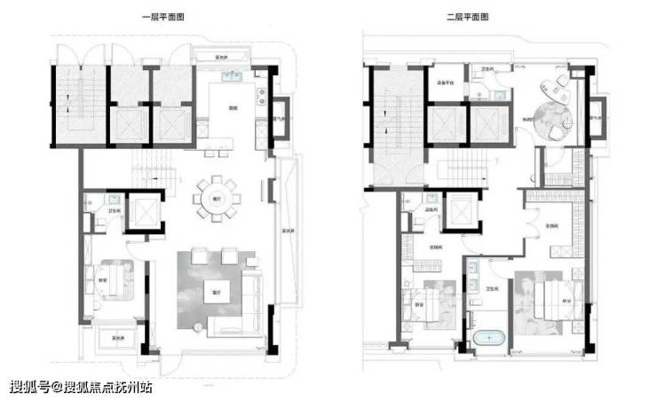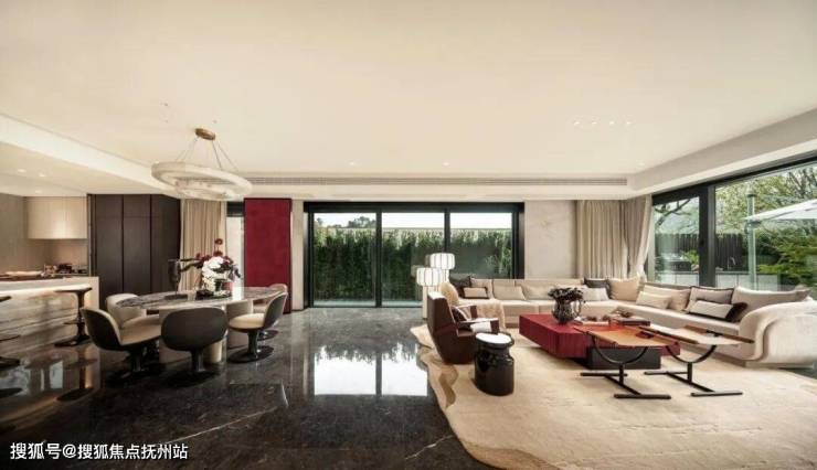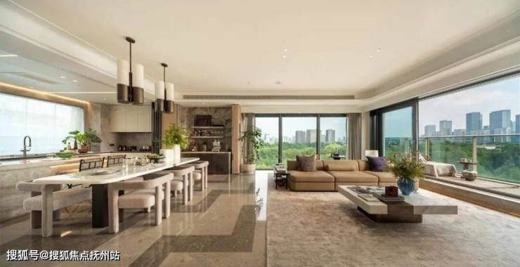户型②下叠240 m²精装修风格为贵族东方风格,由近境制作团队设计,一层公区客餐厨一体化开放空间,客餐厅 270°大面的落地开窗,内外对景,取自然为景
