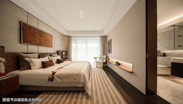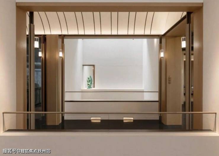 二者通过香槟色金属,浅灰色石材、通透玻璃与东方意象的现代表达实现风格统一,构建高端居住氛围。