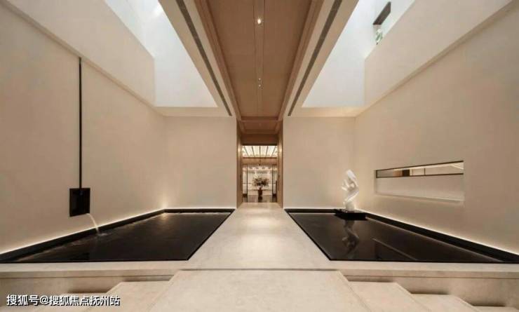 拱廊与室外灰空间衔接景观水院,结合礼序归家水庭与游廊式路径,共同构成“四进庭院”的归家体系。通过精心组织路径与尺度转换,营造出小而精、序列丰富的场景体验。