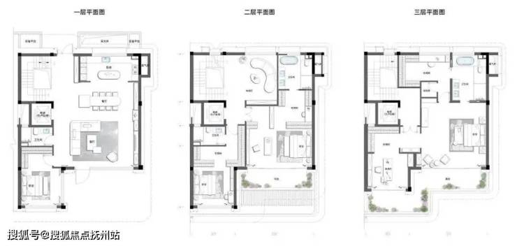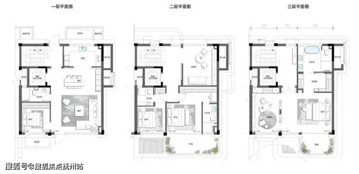 项目叠拼235-286㎡面积段户型,上中下叠均独立入户,全套房设计。设计亮点:宅前个性展示区、归家仪式型门头、6.2米超宽起居厅、中叠增设露台形成室内外联动的社交空间。