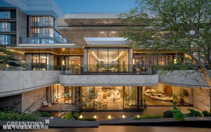 顶层泳池度假、首层社交会客、地下层静谧私享,每个空间都能透过全景玻璃揽目窗外,与城市景观无缝渗透,实现“观景者,亦是风景”的蒙太奇剧场式体验。