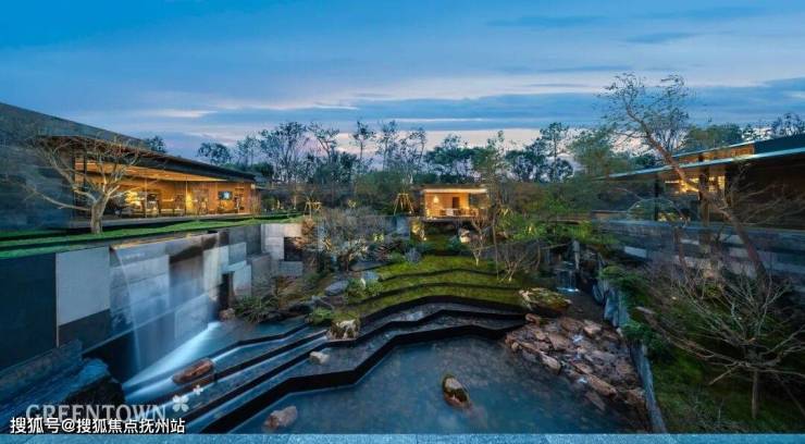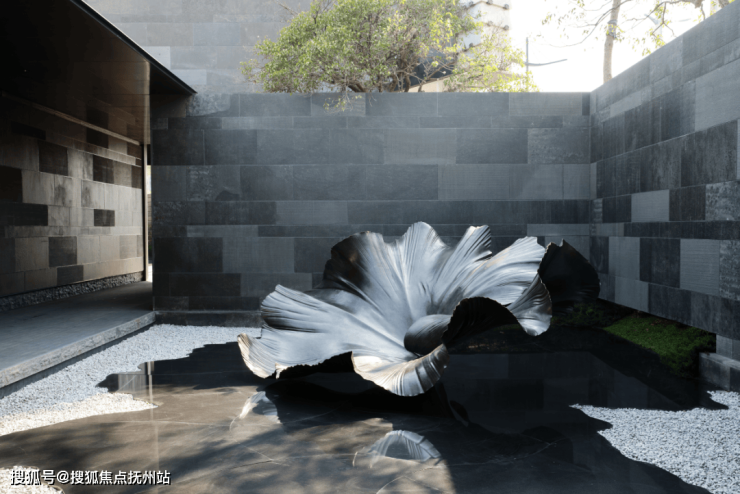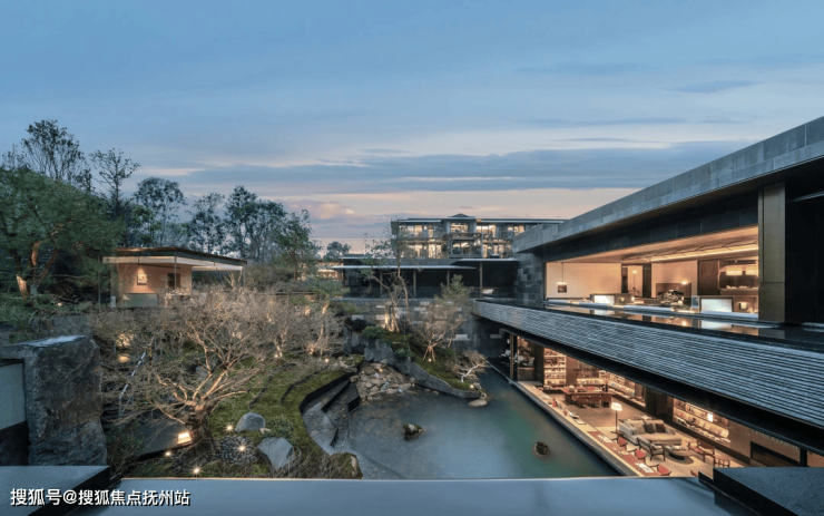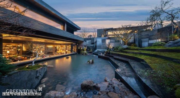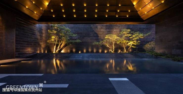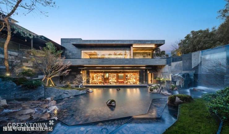 特别值得一提的是,园林取意《西园雅集》,利用天然高差,打造约10米高差的双层立体洄游空间,让约3000平方米的庭院在步履起承转合间,池、泉、瀑、溪、涧错落交织,犹如一幅“豁然开朗”山水轴卷。
