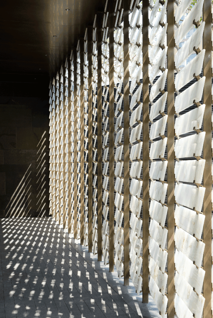 结合在地文化“莲湖如玉”的美好寓意,义乌凤栖逸庐主入口门头以池间璞玉为灵感,通过白玉、墨玉、青玉三种灵玉搭配,实现古代玉琮礼序的当代转译,错落有致,极具美感。