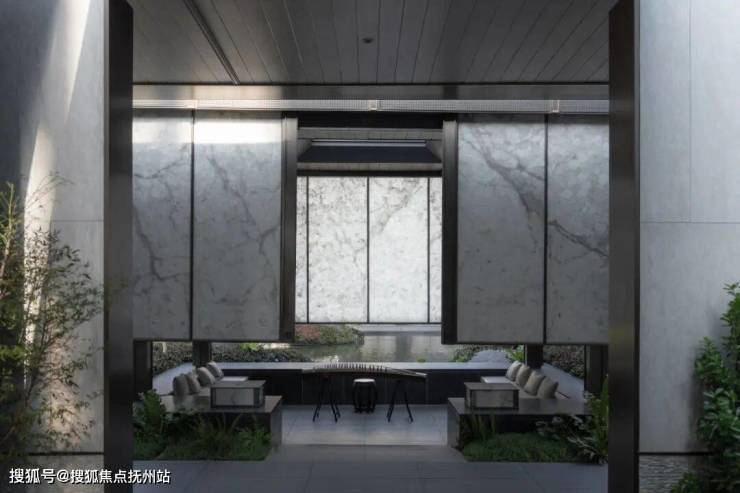 基于场地周界三面均为老旧住宅区,为了延续城市构想,在老旧城市界面中提升产品形象,景观希望用设计保留古典园林中的东方韵味,取法留园师法艺圃,再现东方门庭风度,力求打造一处藏于城区中可见山水、可见四时的东方藏品大宅。