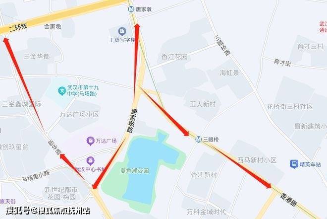 唐家墩路发挥“僚机作用”,以一己之力将发展大道、新华路、香港路三条主干道“一键三连”,直线距离约2公里内,轻松解锁菱角湖、范湖、台北路等商圈,搭上武汉二环的快车道,通达全城。