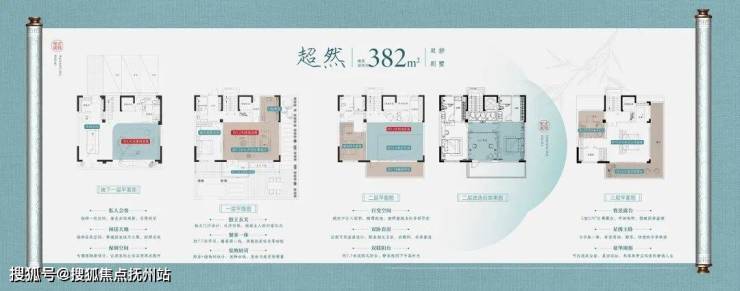 户型:建面约382㎡双拼别墅,连地下室在内一共上下4层,在市面上联排本就稀少又以两开间为主的前提下,这批三开间的双拼别墅,有点罕见,南向的面宽达到了约11.3米。