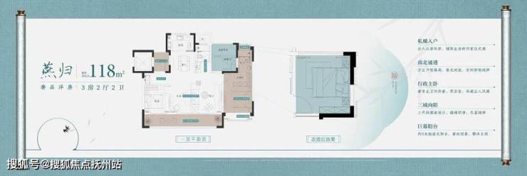 整体来看,项目做到了LDK一体化设计,10米的南向面宽、中西双厨、3.2米层高等配置。