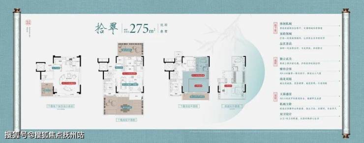 建面约275㎡的下叠和约173㎡的上叠,属于纯粹的上下二叠产品,非常少见,印象里近几年只有山樾雅苑、缦山居这两个项目有过这种四叠产品。
