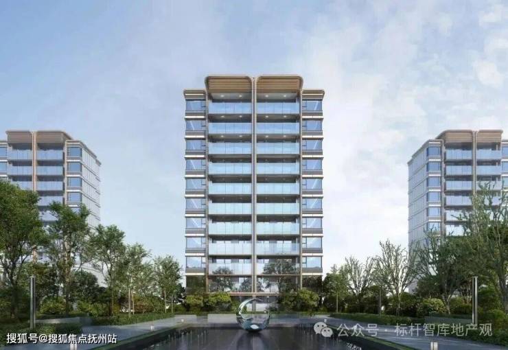 金茂锦棠的建筑立面,从项目LOGO中提取出生长线条,用于构建「向上生长」的建筑表情。以铝板在建筑外檐上勾勒出装饰框,远望下仿佛层叠的「流线画框」。南向的装饰框在楼顶与塔冠融合,最终汇聚成「海棠之芯」,如一棵向上生长的参天大树。