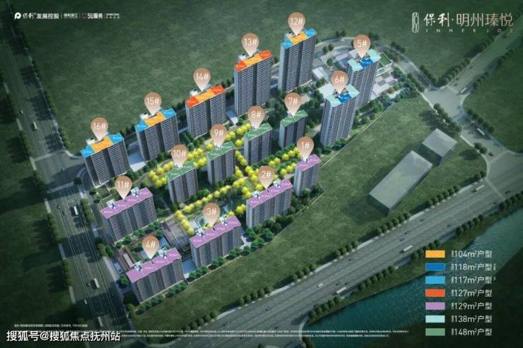 项目总占地面积约5.51万方,总建筑面积约18.43万方,容积率约2.4,绿地率30%,整个项目规划16幢14-26F的高层,总计约985户,户型建面约104-148㎡共8种,以大面积改善为主。