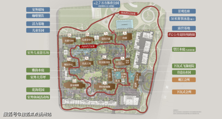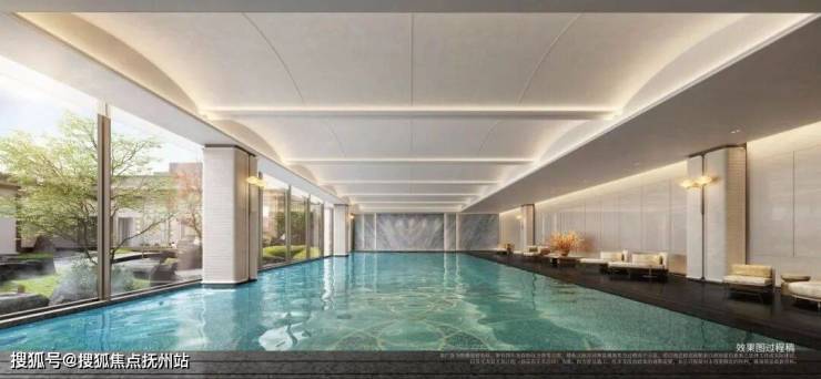 还有下沉式飞瀑庭院设计:围绕着飞瀑景观,规划了下沉式会所,有恒温泳池、私宴厅、健身房、行政酒廊等;架空层泛会所有品茗区、儿童空间等。