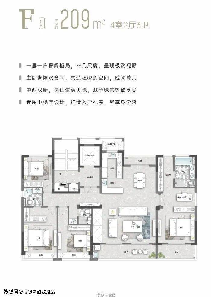 观塘云庐作为禾城匠意作品,以建面约209m²阔景云邸“高质量人类居所”,匹配“高质量人群”。