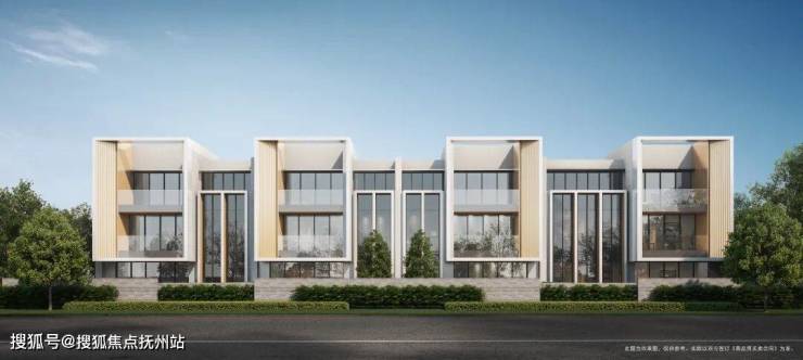 别墅产品,三联排为主,大开间,据悉楼间距达到12-14米,简约的几何线条结合大面积玻璃,让立面更简洁,更国际化,三层建筑通过设计呈现两层的视觉效果,整个立面讲究艺术建筑的层次感,推进关系,使每户都有独立的隐私效果。