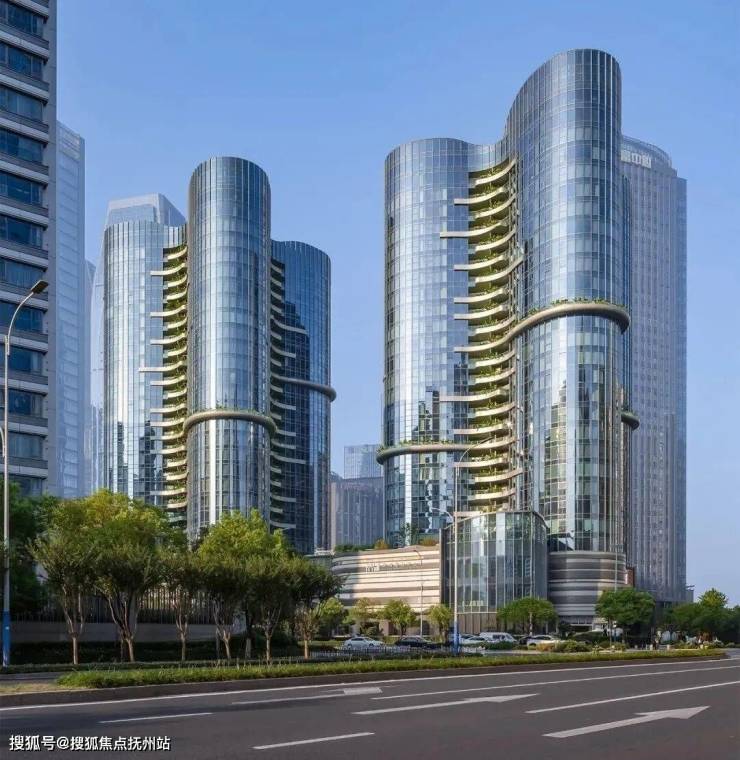 华鸿都会中心为“三叶双子恒星”,它代表了钱江世纪城的生长曲线,也是“方圆之间”的生活格局。项目以三叶草为建筑原型,这样的建筑设计也造就了每户270度的环幕都市景观,较高的窗墙比为室内提供大尺度的采光面及通透感,阳光如流水般倾泻。