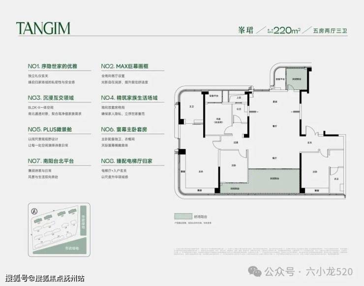 最大约220㎡户型,全明卫,南向面宽跃升至约18.7米。