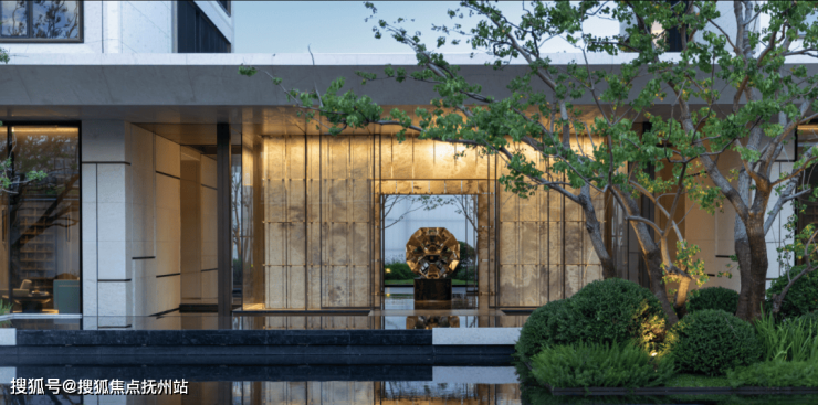 示范区以“立体山水,大隐于市”为理念,将江南园林的造境哲学转化为现代建筑语言。通过多重庭院、路径转折与虚实界面,在有限的地块中实现步移景异、小中见大的沉浸式游观体验。选用沉香米黄砂岩与古铜材质,低调雅奢,历久弥新。
