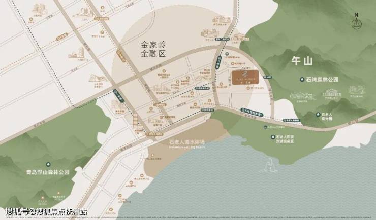 它坐落于崂山区前海石老人板块,既从容衔接崂山石老人稀贵一线海景,午山森林公园,石老人海滩,石老人观光园等环绕左右,又巧妙规避了核心区的喧嚣,真正做到“离尘而不离城”。