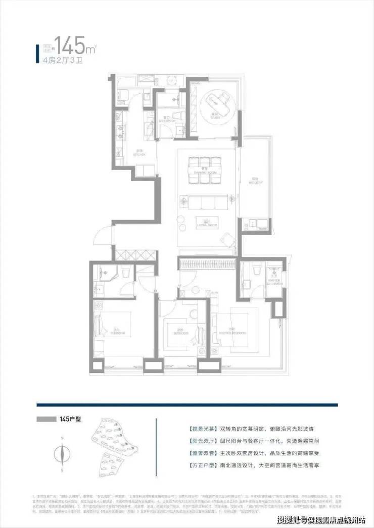 在产品打造上,项目融入现代成长户型理念, 首期入市493套建面约89-145㎡的智慧美宅。用心考量三开间朝南、客餐厅一体化、1.5卫设计等产品细节,一步到位满足家庭全周期生活进阶。
