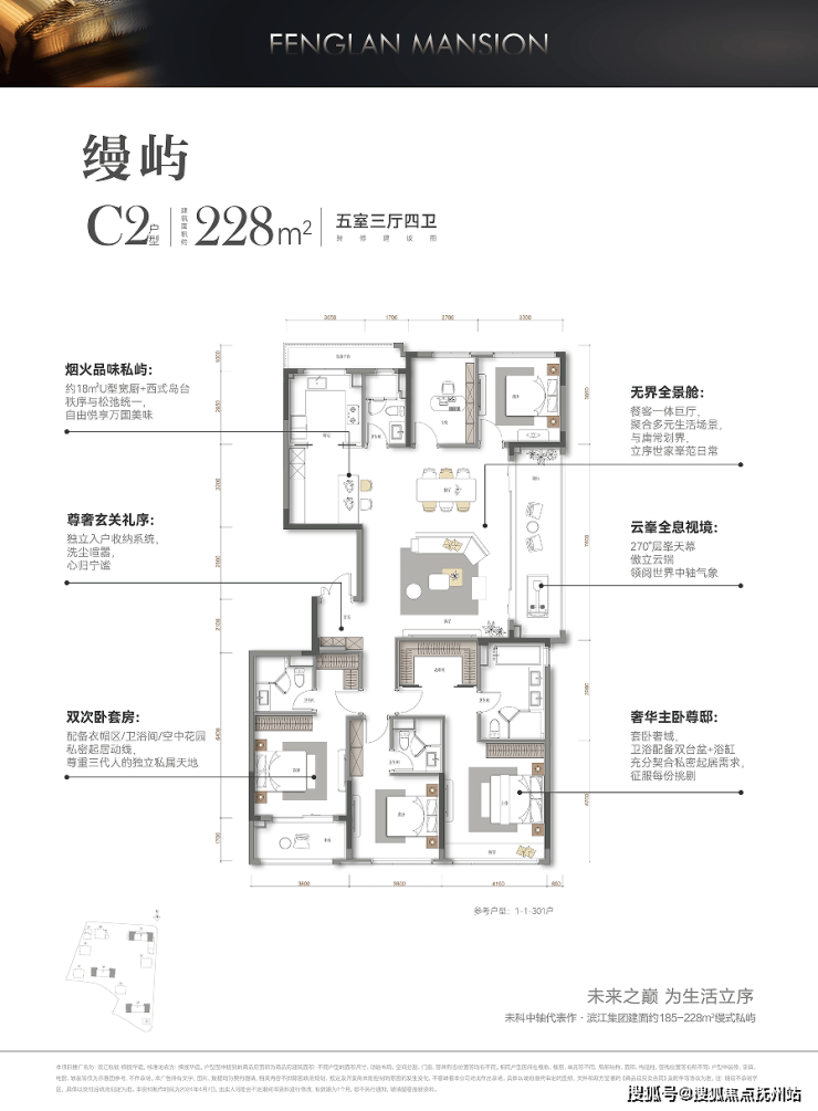 户型建筑面积为约185㎡、187㎡,223㎡、228㎡,纯改善。滨江枫揽华庭 销售电话:186-6709-7609√√【微信同号】约185㎡做四房,这是豪宅的尺度。建面约228㎡户型,则是185㎡户型的进阶版。同样三房朝南,而且每个房间都升级成了带独卫的套房!最大程度上照顾家庭成员的独立性和私密感。空间感,已经快要赶上市面上的商业大平层了。