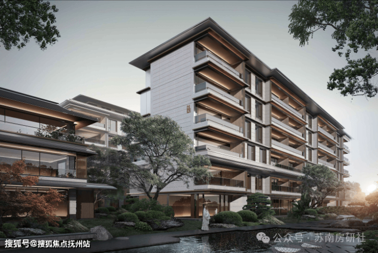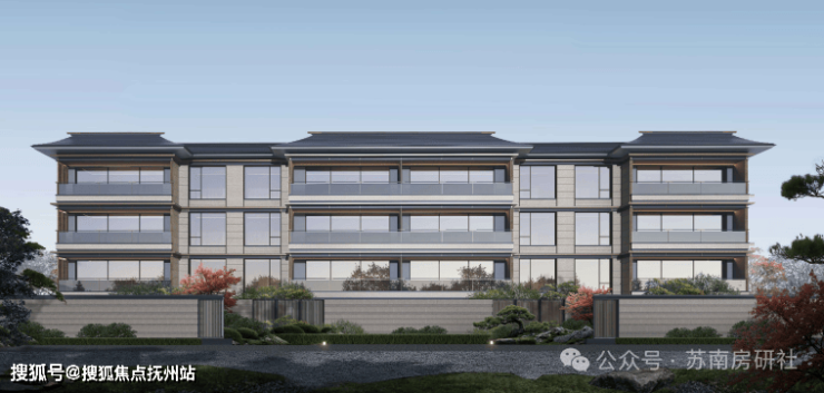 而从同步公示的效果图来看,项目的建筑外立面整体形态简洁流畅,合院为坡屋顶结构、建筑细节上,金属格栅等体现江南建筑风貌。