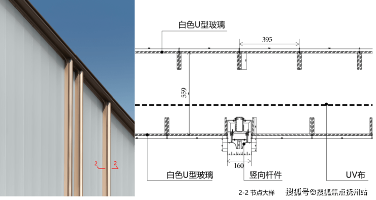 建筑二层立面采用半透明的双层U玻进行横向拼接,形成舒展轻盈的立面效果。