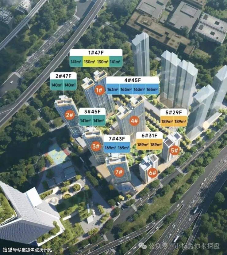 规划方案显示武汉城建启元一期规划有7栋住宅。南侧地块有5栋楼、北侧地块有2栋楼,2栋29-31层高层住宅、5栋45-47层超高层住宅,中间由公共通道隔开。建面约141-189m准四代