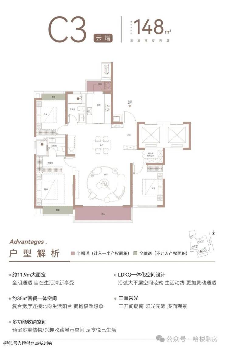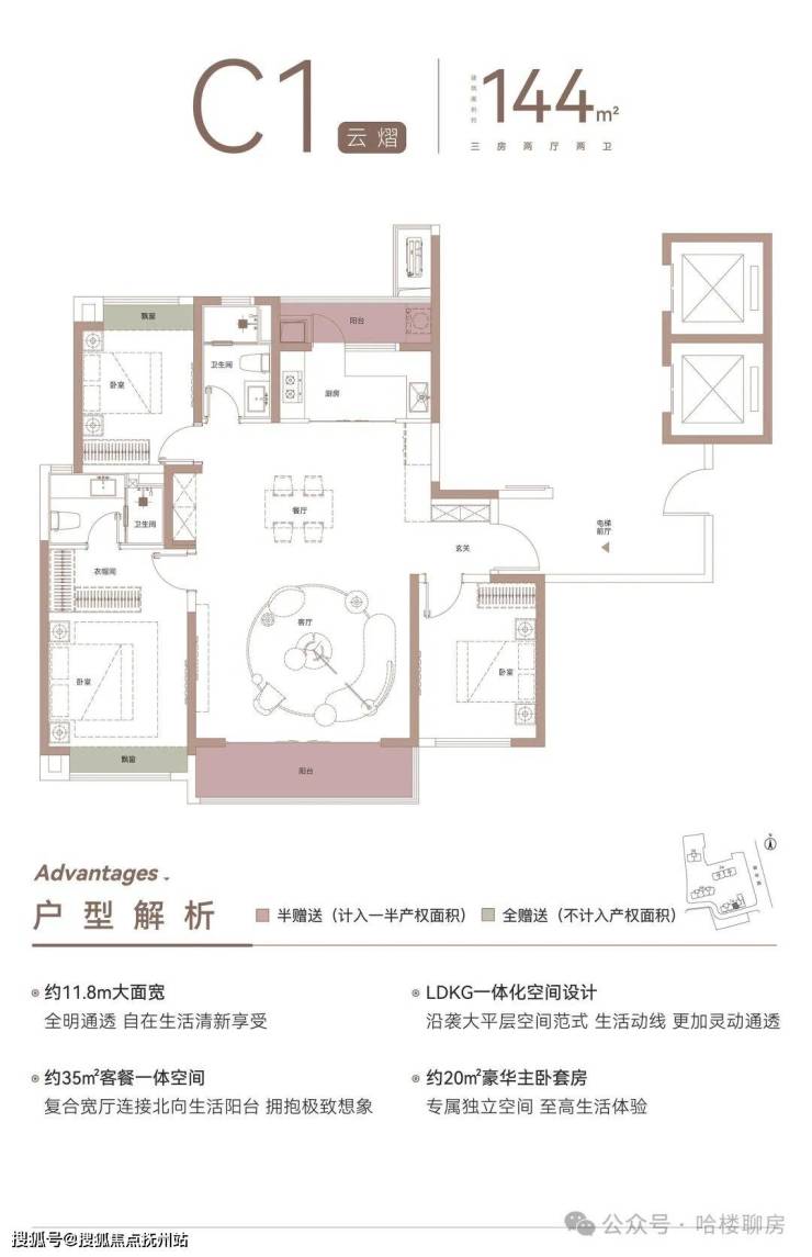 主力户型:建面约128㎡、140㎡、144㎡、145㎡、148㎡三房云际央著